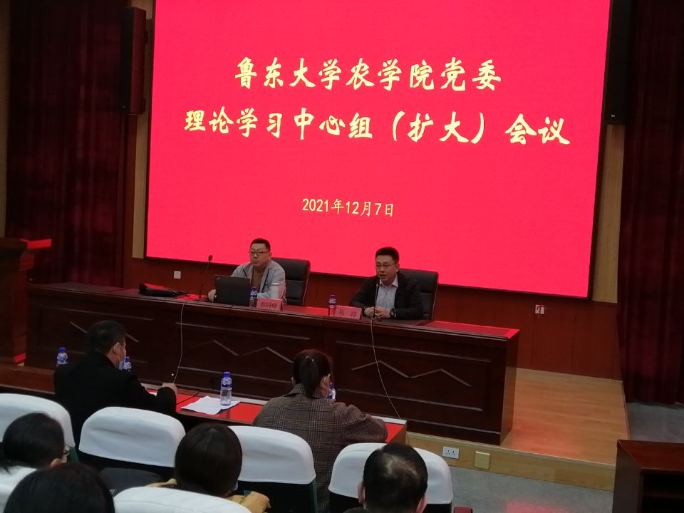 12月7日下午,农学院党委在北九报告厅举办理论学习中心组(扩大)会议,邀请学校党的十九届六中全会精神宣讲团成员、马克思主义学院教授郭同峰作专题辅导。全院教师、学生党员近200人参加报告会。会议由学院党委书记丛涛主持。