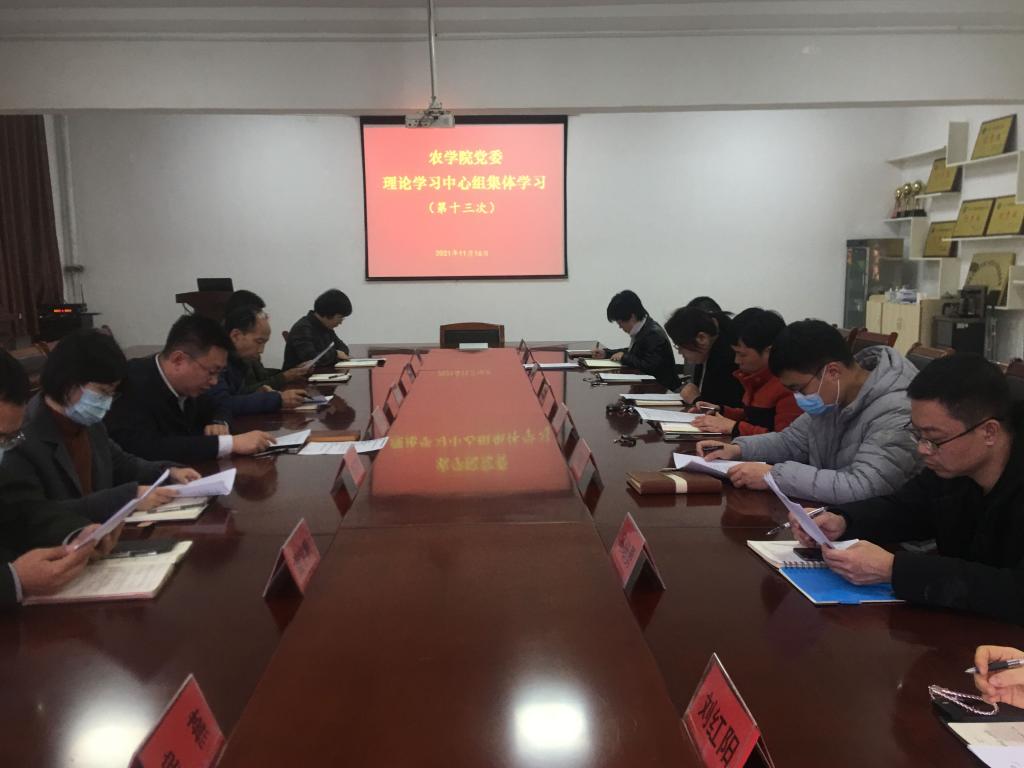 11月16日上午,农学院党委理论学习中心组(扩大)召开集体学习会议,专题学习《中国共产党第十九届中央委员会第六次全体会议公报》,研究部署全院学习宣传贯彻党的十九届六中全会精神有关工作。学院党委书记丛涛主持学习并讲话。学院党委委员,各党支部书记、党小组组长,科级以上干部及全体辅导员参加学习。