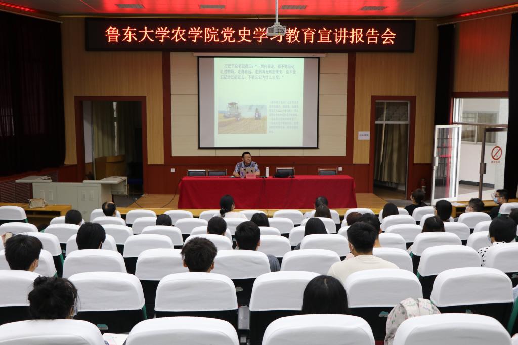 6月15日下午,农学院党总支在北九报告厅举行党史学习教育宣讲报告会,学校党史学习教育专家库成员、马克思主义学院郭同峰教授作专题辅导。全院教师、学生党员参加报告会。