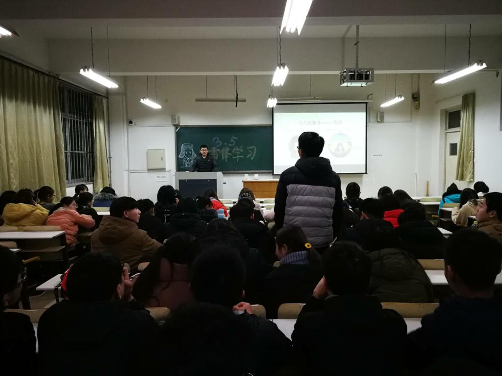 3月5号晚上,美高梅4688集团am于北八教学楼开展了以“学雷锋,做好事”为主题的团会活动。参加此次团会的成员为17级全体学生。