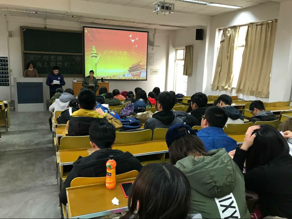 11月28日下午,美高梅4688集团am于北九教学楼开展了以“庄严的党旗,向上的我们”为主题的团会活动。参加此次团会的成员为17级全体学生。