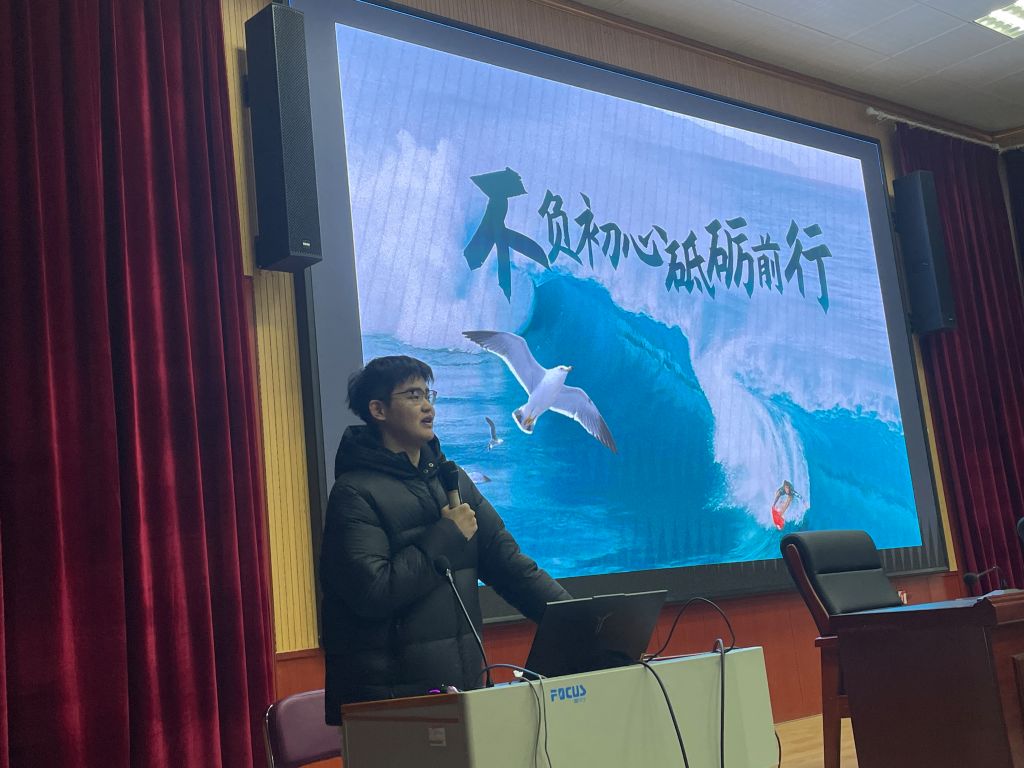 宣讲人牛超分享了自己的学习经验,他提到在学习中,我们需要屏蔽电子产品等外界因素,多思考、勤思考问题,提高学习主动性。在学习过程中需要注重方法,把题目中的知识点理解透彻同时也需要注重效率,劳逸结合。