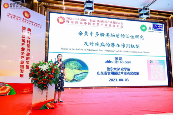 应中国菌物学会第四届桑黄产业发展大会组委会邀请,8月3日上午,美高梅食用菌系张蕊副教授做了题为“桑黄中多酚类物质的活性研究及对疾病的潜在作用机制”的大会报告。报告介绍了团队在不同栽培方式对桑黄产物的影响、桑黄多酚的高效提取新模式、桑黄多酚生物活性研究以及潜在药理活性方面的研究进展,证实了被誉为“森林黄金”的桑黄所具有的巨大研究价值和潜力。报告引起了参会嘉宾及代表的普遍兴趣,会议期间进行了深入的交流探讨。