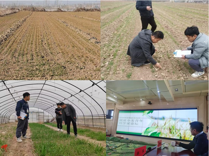 在滨州市博兴县,团队前期已与当地企业京博农化有限公司建立了良好的合作关系,目前正针对小麦耐盐碱特色小麦新品种选育进行联合技术公关。崔法教授对当地生产存在的问题进行了深入调研,对联合选育的小麦耐盐碱特色小麦新品种(系)进行了调查和数据分析,并提供了技术指导。