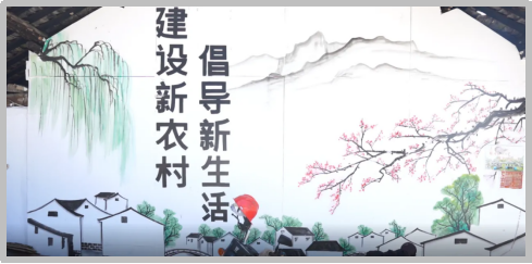 团队成员对于学坝村立面改造的墙面绘画设计