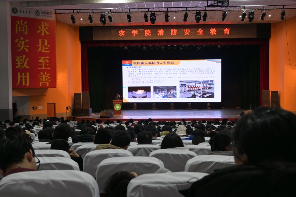 本次消防安全教育活动,邀请了芝罘区消防大队专业人员进行消防知识讲解和现场消防演练,对农学院学生进行了消防知识的强化科普、警示教育和提示宣传。理论知识授课,主要围绕高校火灾危险性、案例、特点及高校重点部位的火灾隐患等方面展开讲解,学习火灾起因、逃生自救、隐患消除、灭火设备的正确使用,并通过引用大量的高校教室、宿舍、食堂、实验室、电动车等典型火灾案例深入剖析了当前容易忽视的安全薄弱环节。现场观摩演练,将在场的学生带到北操,分组进行消防演练实操,手把手地教学参训人员如何使用灭火器、灭火毯,同时对办公室、实验室、宿舍防火灭火、报警、初期火灾扑救、火灾自救与逃生、常用灭火器的选用等方面作了详细介绍。