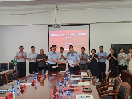 吴吉壮介绍了烟台市农业技术推广中心自1989年成立以来的发展情况,特别是介绍了中心在高效种植、畜牧养殖、农业机械化等领域取得的技术推广成就。农技推广中心是高校研发成果落地企业、农户的桥梁,在农业新质生产力转化中发挥着至关重要的作用。作为教学科研单位的农学院和作为技术推广转化单位的农技推广中心,形成了天然的互补关系,双方要在已有的良好合作基础上,进一步整合优化资源,延伸完善现代农业产业链条,在农业新品种研发、新技术推广、新成果转化等方面交出让烟台人民更加满意的时代答卷。
