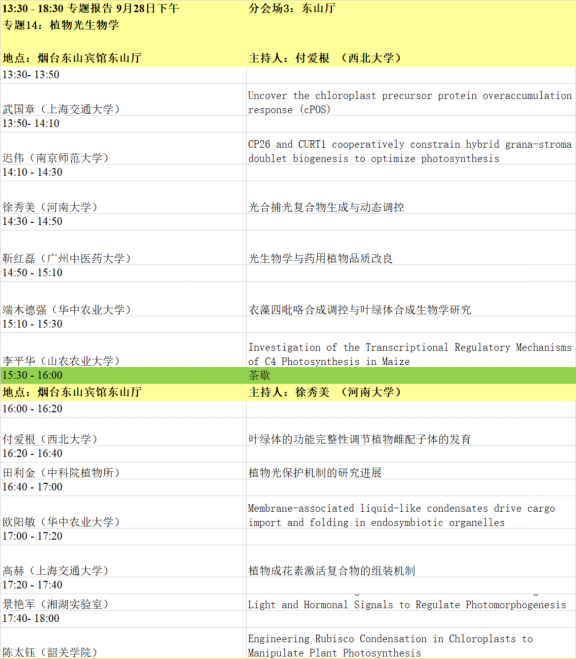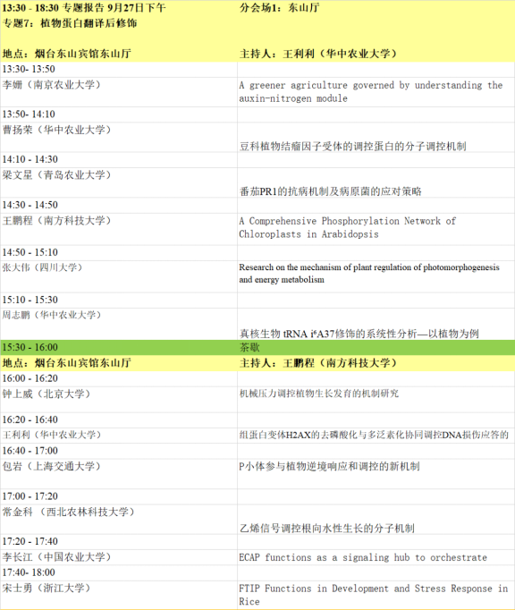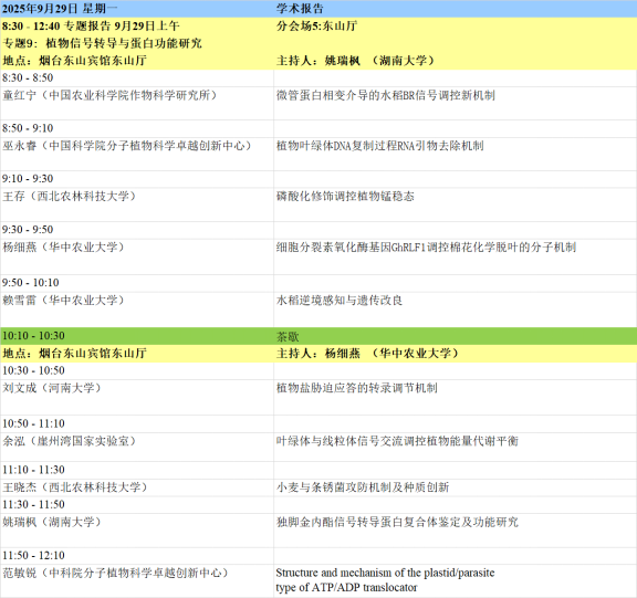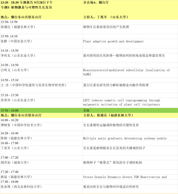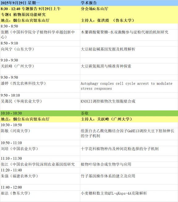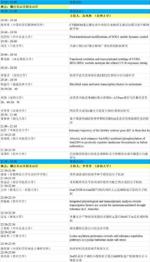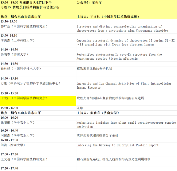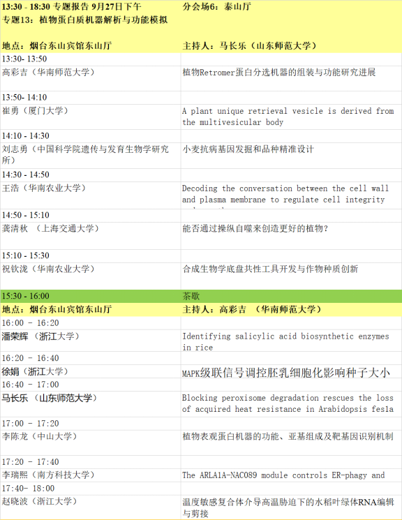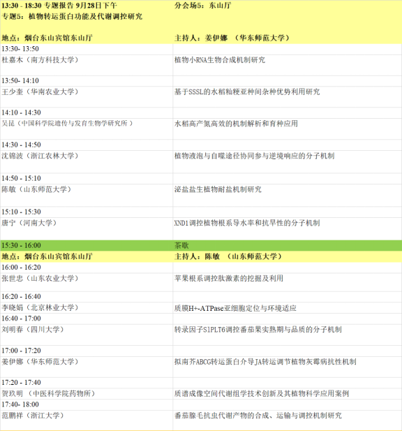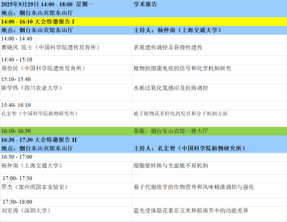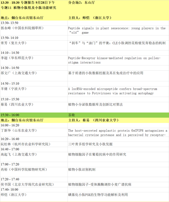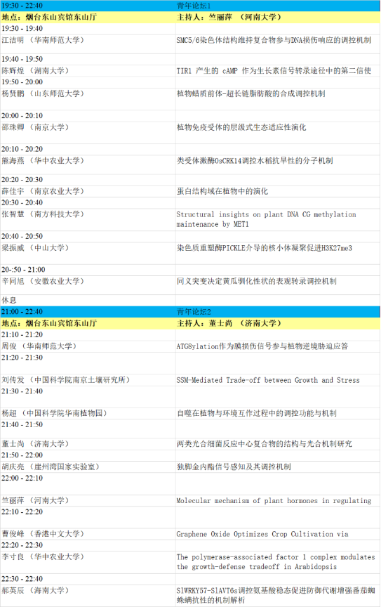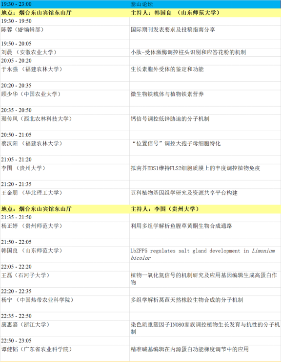 1. 本届会议设有大会主题报告、特邀报告、大会报告、泰山论坛、青年论坛、青苗论坛、墙报等多种形式。大会主题为“整合组学时代的植物蛋白质功能研究”,内容主要包括:植物基因组、转录组、蛋白质组、代谢组、表型组,植物基因功能、植物合成生物学、蛋白质结构功能、植物小肽、生物信息及多组学等蛋白和基因研究相关最新动态。