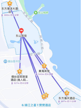 交通:东方海洋大酒店位于芝罘区滨海西路1号,离主会场1.1公里,步行约17分钟;距离烟台站5.4公里,打车约13分钟;距离烟台南站15.4公里,打车约23分钟;距蓬莱国际机场49.6公里,打车约1小时12分钟。