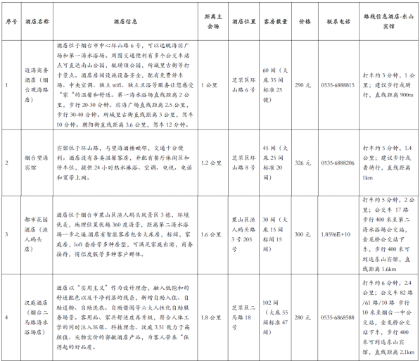 交通:离主会场1公里,位于莱山区海韵路5号。距离烟台站约17分钟车程,距离烟台南站约21分钟车程,距蓬莱国际机场约1小时10分钟车程。预定电话:0535-6086788。