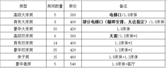 准四星,有会务组内部预留协议房242间,大床房93间,标间149间。协议价480元/间/日,含双人早餐;450元/间/日,含单人早餐。