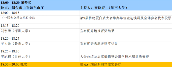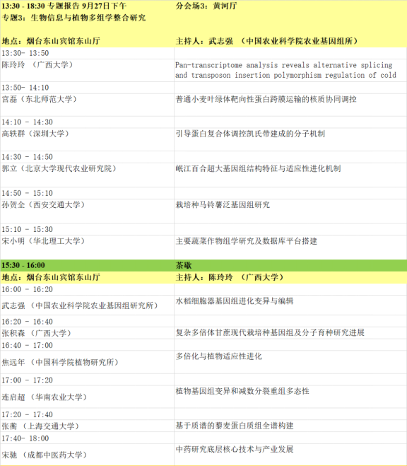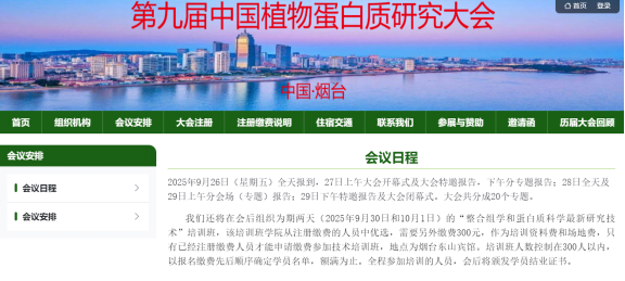 会后进行为期两天(9月30日和10月1日)的“植物整合组学和蛋白质科学最新研究技术应用经验分享及实战技巧”培训班,该培训班学员从注册缴费的人员中优选,只有已经注册缴费人员才能申请缴费参加技术培训班,地点为烟台东山宾馆。培训班人数控制在300人以内,以报名缴费先后顺序确定学员名单,额满为止。全程参加培训的人员,会后将颁发学员结业证书。培训班讲师推荐及申请请联系王旭初教授:邮箱xchwanghainan@163.com,手机 13111998316,微信同号。培训班学员报名咨询请联系:白悦琳(小白老师) 手机 18332917582 微信同号 邮箱baiyuelin18@163.com。