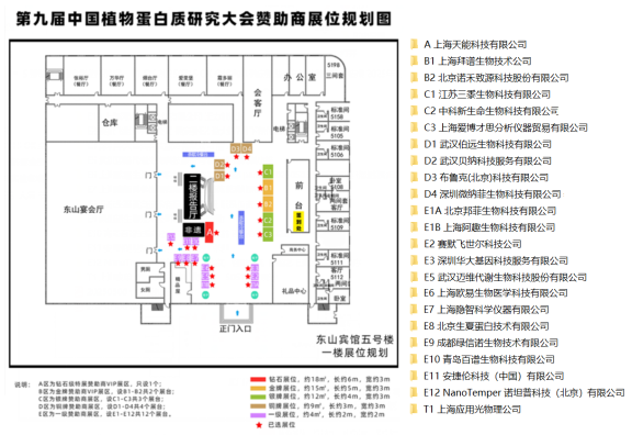 北京邦菲生物科技有限公司(E1A)、上海阿趣生物科技有限公司(E1B)、赛默飞世尔科技公司(E2)、深圳华大基因科技服务有限公司(E3)、武汉迈维代谢生物科技股份有限公司(E5)、上海欧易生物医学科技有限公司(E6)、上海隐智科学仪器有限公司(E7)、成都绿信诺生物技术有限公司(E9)、青岛百谱生物科技有限公司(E10)、安捷伦科技(中国)有限公司(E11)、NanoTemper 诺坦普科技(北京)有限公司(E12)。