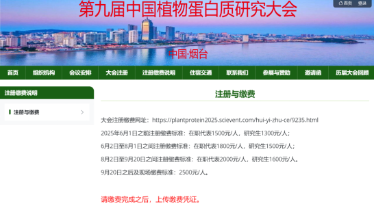 大会注册缴费网址:https://plantprotein2025.scievent.com/hui-yi-zhu-ce/9235.html