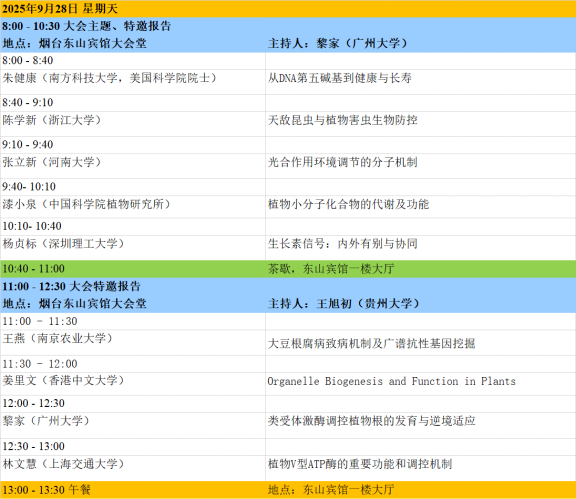 2025年9月26日(星期五)全天报到,大会共预计分成20个专题。27日上午大会开幕式及大会特邀报告,下午分会场专题报告,晚上进行泰山论坛;28日全天及29日上午分会场专题报告,28号晚上青年论坛;29日下午特邀报告及大会闭幕式,29号晚上进行青苗论坛;30号上午离会,随即开始为期两天的技术培训班。